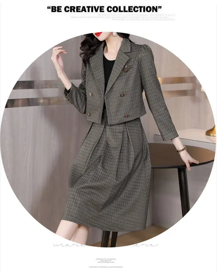 Model Number : spring autumn women blazer skirt two piece set outfits T1059