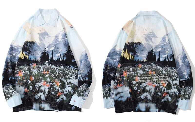 Pattern : Tree Flower Snow mountain Print