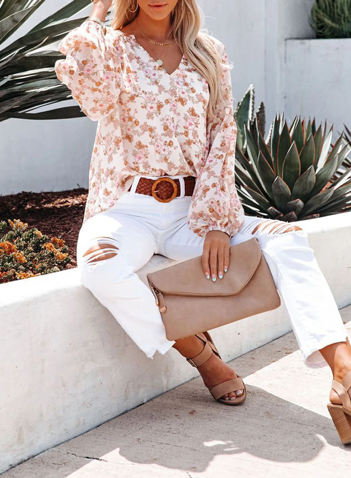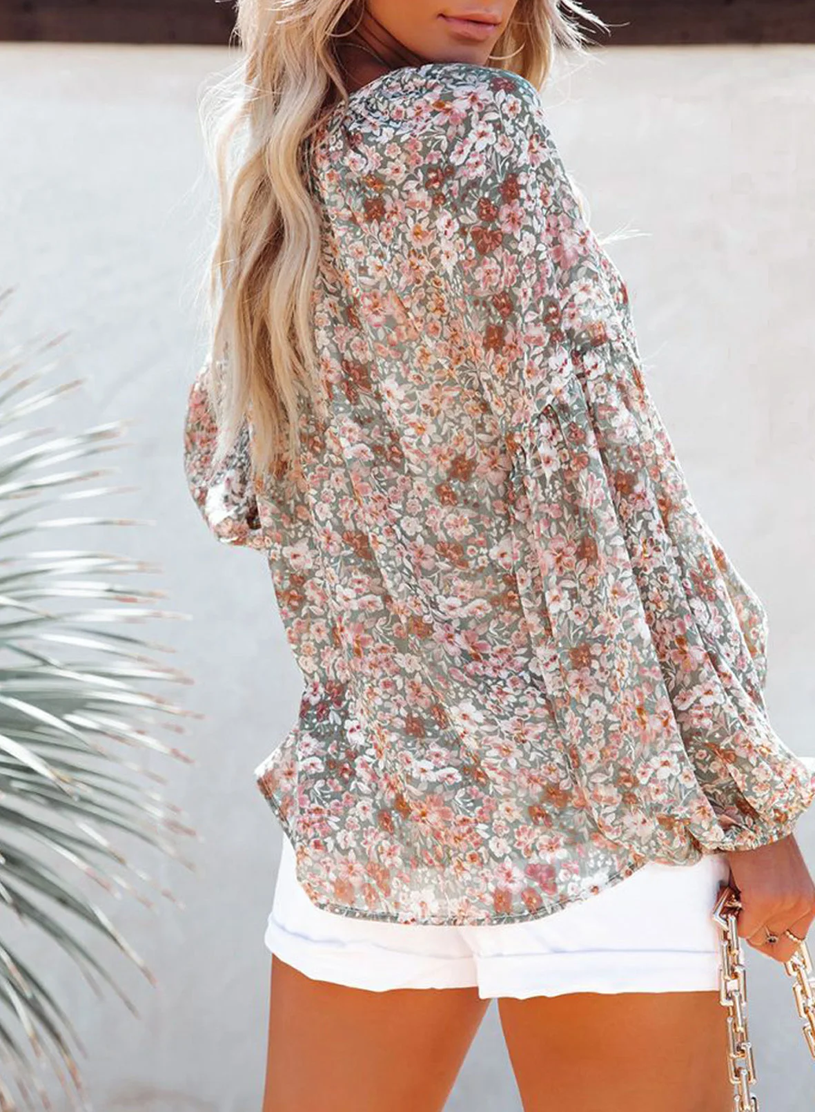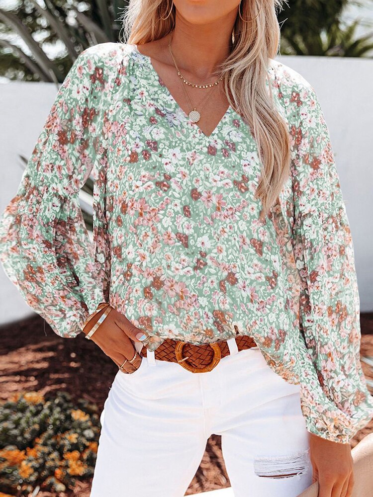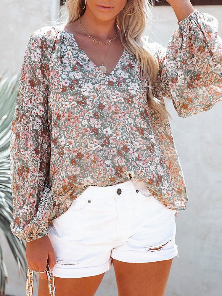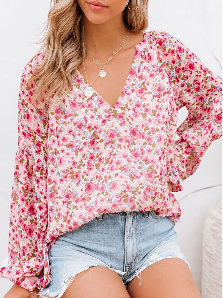 Floral Print Chiffon Blouses:Floral Print Chiffon Blouses