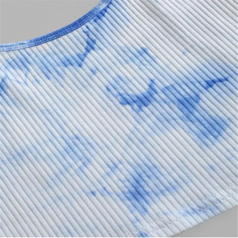 Women Fashion Tie dye Print Tank Top Vest Summer Sleeveless Sexy Crop Tops Ribbed Knitted Tunic Leisure Basic Bodycon Bra Top