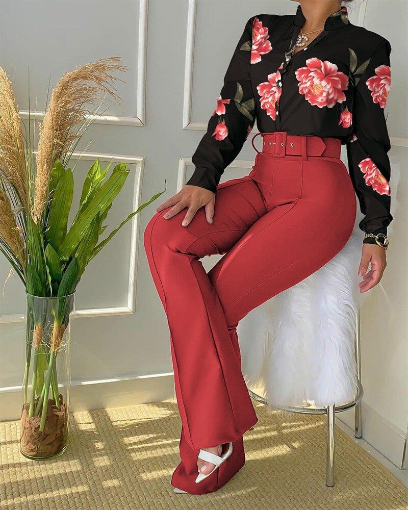 Neckline : Turn-down Collar Women Two Pieces Set